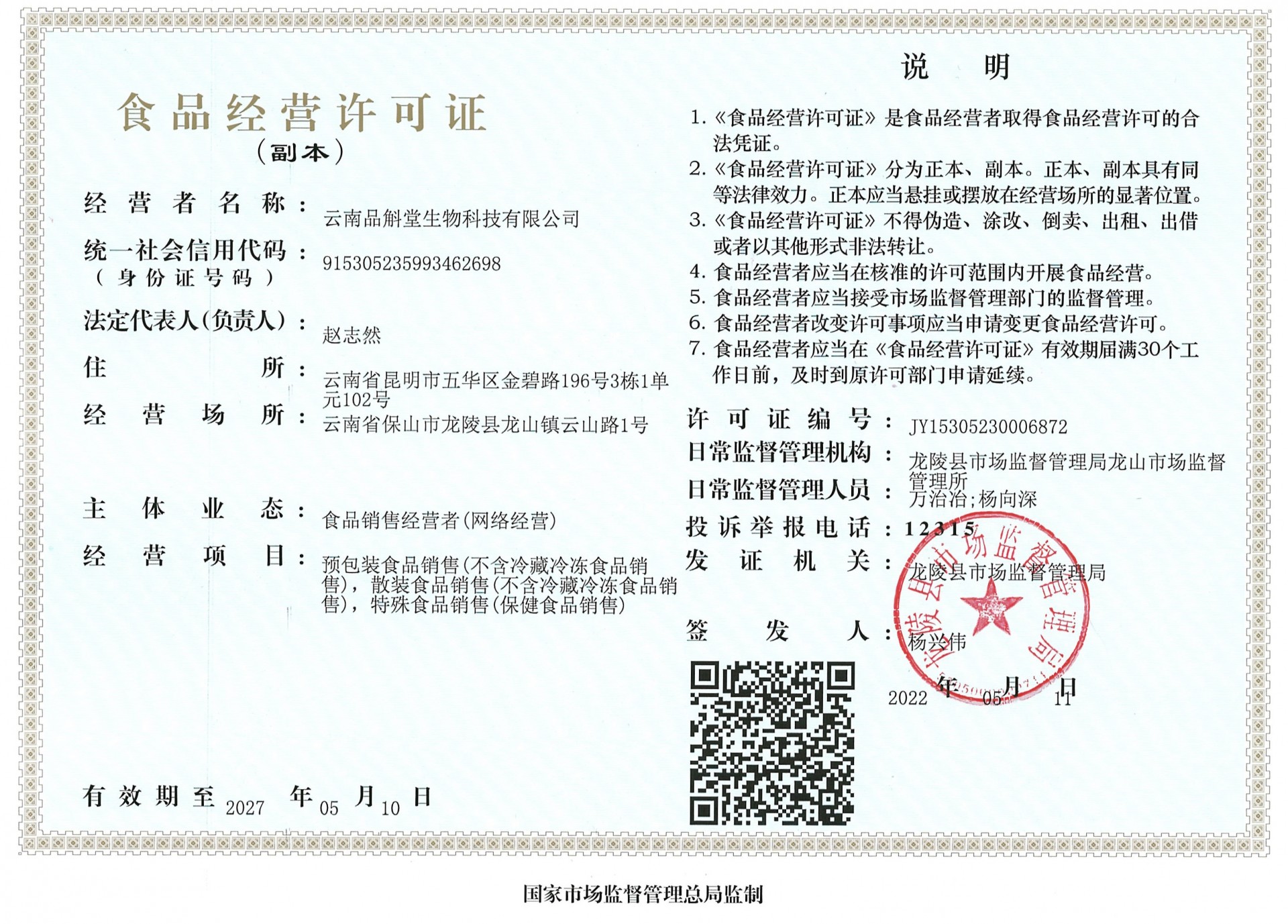 食品经营许可证