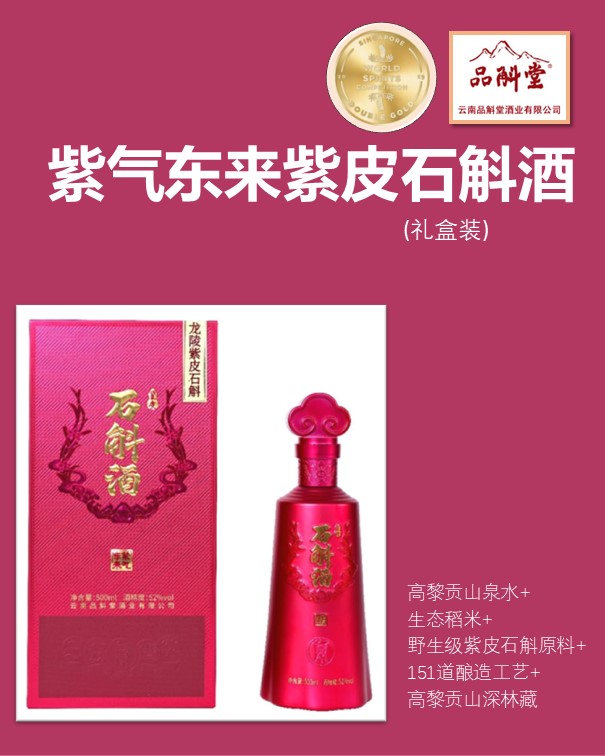 品斛堂紫气东来紫皮石斛酒礼盒装52度单瓶装500ml